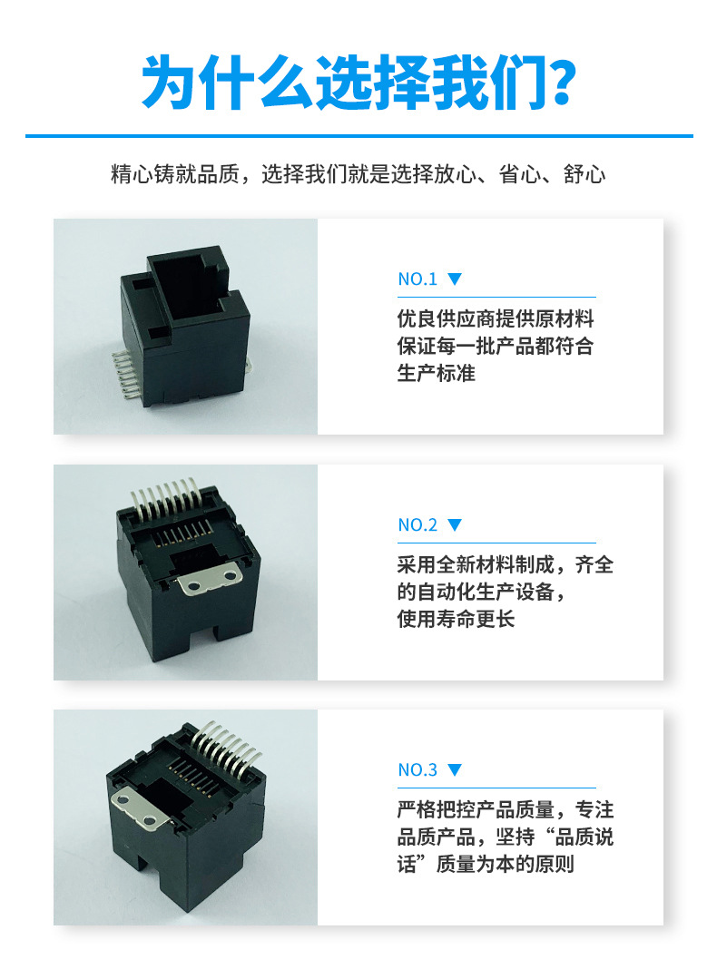 本公司提供優良的RJ11、RJ12電話插接件、RJ45網絡插接件,耐環境RJ45防水連接器,防水電連接器及其它精密連接器,產品應用于網絡通訊(電腦主板,網絡交換機,路由器,電信設備)、惡劣環境下數據傳輸與控制及電源信號傳輸與控制(戶外LED顯示屏、機器控制、工業程序控制等)