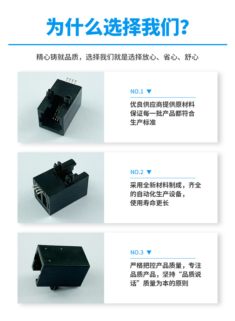 本公司提供優(yōu)良的RJ11、RJ12電話插接件、RJ45網(wǎng)絡(luò)插接件,耐環(huán)境RJ45防水連接器,防水電連接器及其它精密連接器,產(chǎn)品應(yīng)用于網(wǎng)絡(luò)通訊(電腦主板,網(wǎng)絡(luò)交換機,路由器,電信設(shè)備)、惡劣環(huán)境下數(shù)據(jù)傳輸與控制及電源信號傳輸與控制(戶外LED顯示屏、機器控制、工業(yè)程序控制等)