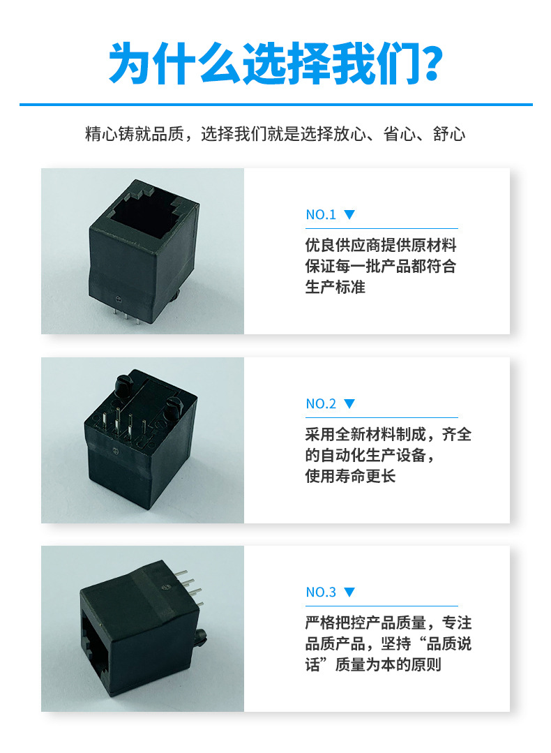 本公司提供優良的RJ11、RJ12電話插接件、RJ45網絡插接件,耐環境RJ45防水連接器,防水電連接器及其它精密連接器,產品應用于網絡通訊(電腦主板,網絡交換機,路由器,電信設備)、惡劣環境下數據傳輸與控制及電源信號傳輸與控制(戶外LED顯示屏、機器控制、工業程序控制等)