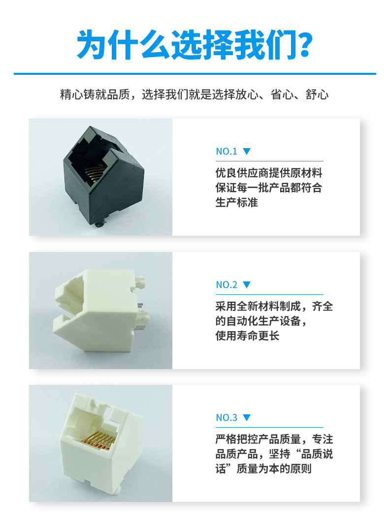 本公司提供優良的RJ11、RJ12電話插接件、RJ45網絡插接件,耐環境RJ45防水連接器,防水電連接器及其它精密連接器,產品應用于網絡通訊(電腦主板,網絡交換機,路由器,電信設備)、惡劣環境下數據傳輸與控制及電源信號傳輸與控制(戶外LED顯示屏、機器控制、工業程序控制等)