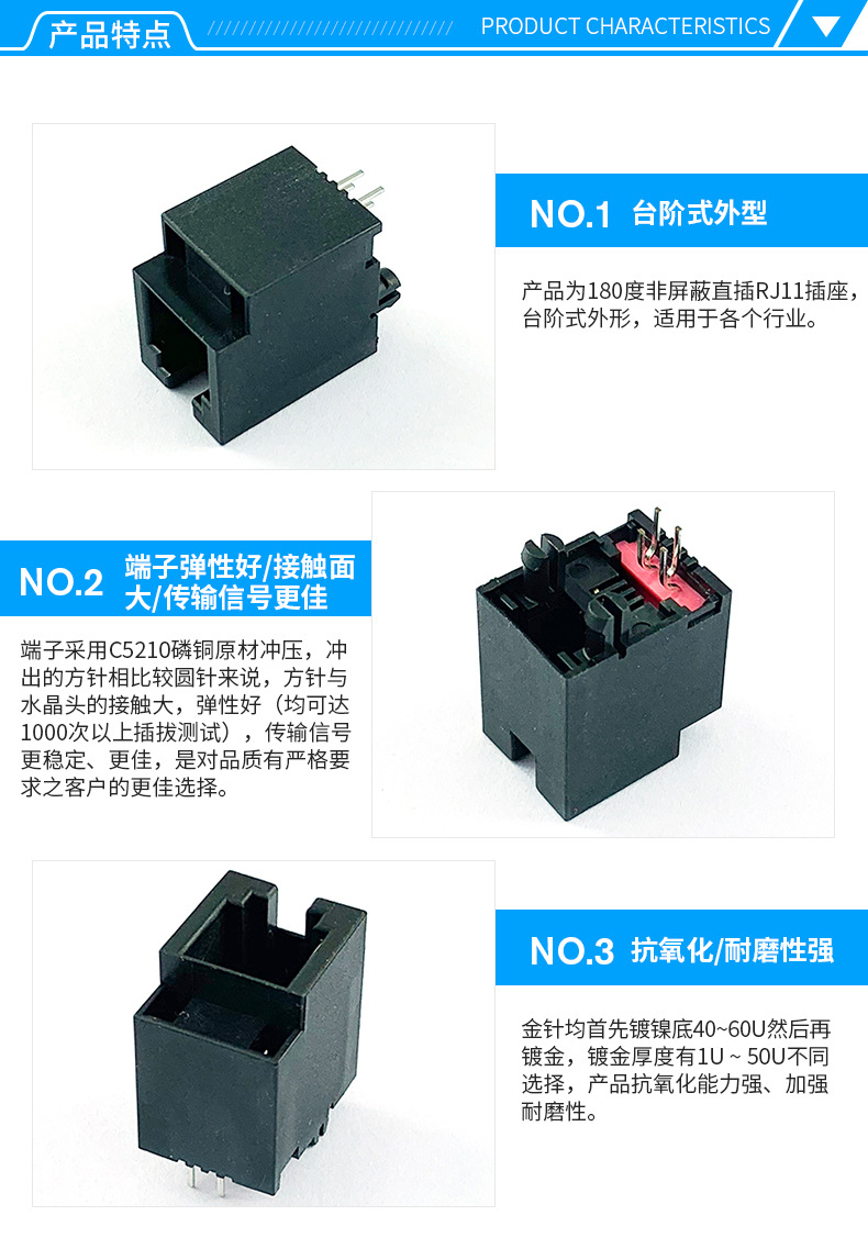 本公司提供優良的RJ11、RJ12電話插接件、RJ45網絡插接件,耐環境RJ45防水連接器,防水電連接器及其它精密連接器,產品應用于網絡通訊(電腦主板,網絡交換機,路由器,電信設備)、惡劣環境下數據傳輸與控制及電源信號傳輸與控制(戶外LED顯示屏、機器控制、工業程序控制等)