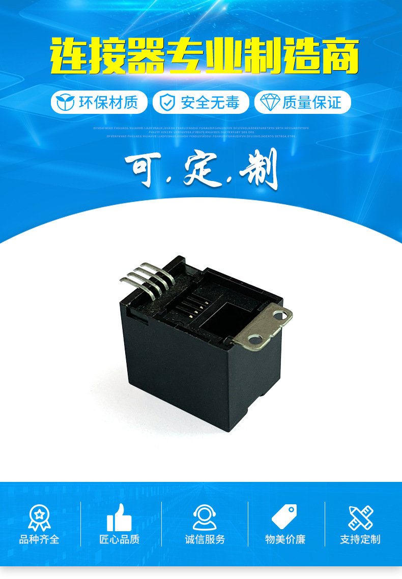 本公司提供優良的RJ11、RJ12電話插接件、RJ45網絡插接件,耐環境RJ45防水連接器,防水電連接器及其它精密連接器,產品應用于網絡通訊(電腦主板,網絡交換機,路由器,電信設備)、惡劣環境下數據傳輸與控制及電源信號傳輸與控制(戶外LED顯示屏、機器控制、工業程序控制等)