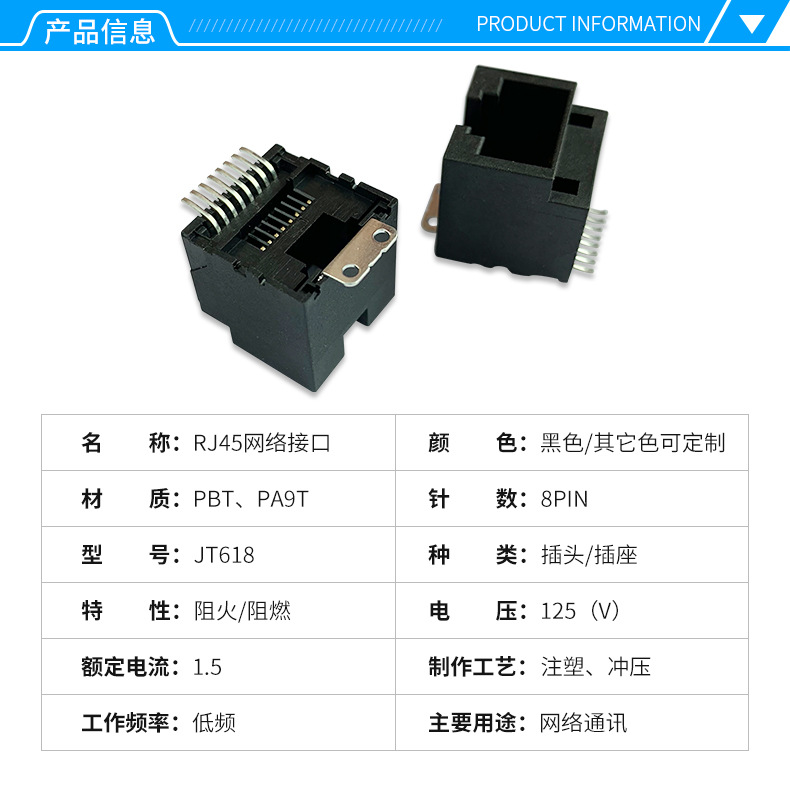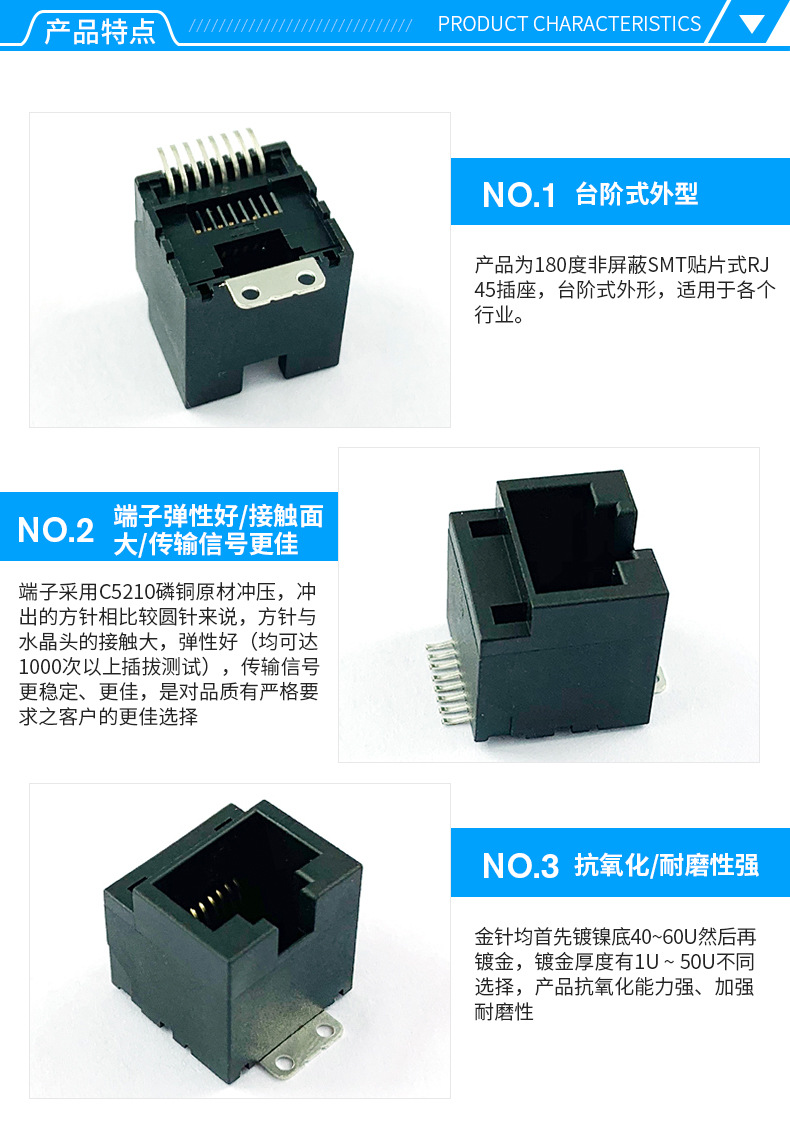 本公司提供優(yōu)良的RJ11、RJ12電話插接件、RJ45網(wǎng)絡插接件,耐環(huán)境RJ45防水連接器,防水電連接器及其它精密連接器,產(chǎn)品應用于網(wǎng)絡通訊(電腦主板,網(wǎng)絡交換機,路由器,電信設備)、惡劣環(huán)境下數(shù)據(jù)傳輸與控制及電源信號傳輸與控制(戶外LED顯示屏、機器控制、工業(yè)程序控制等)