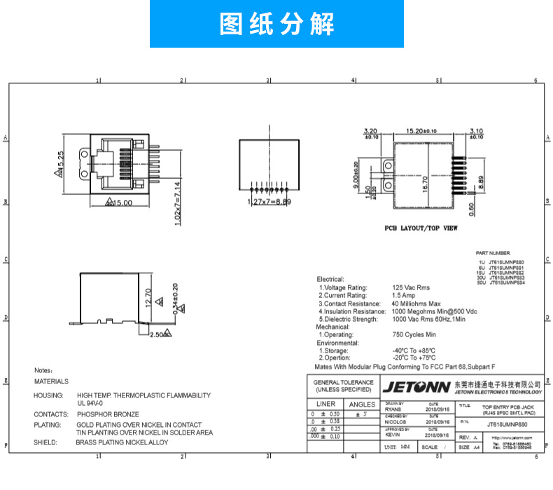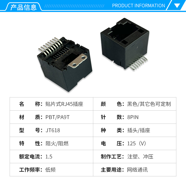 RJ45貼片式插座 矮體網口座