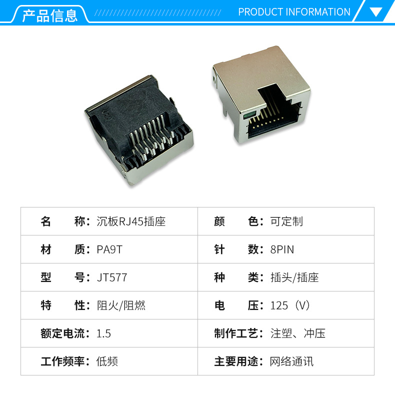 本公司提供優良的RJ11、RJ12電話插接件、RJ45網絡插接件,耐環境RJ45防水連接器,防水電連接器及其它精密連接器,產品應用于網絡通訊(電腦主板,網絡交換機,路由器,電信設備)、惡劣環境下數據傳輸與控制及電源信號傳輸與控制(戶外LED顯示屏、機器控制、工業程序控制等)